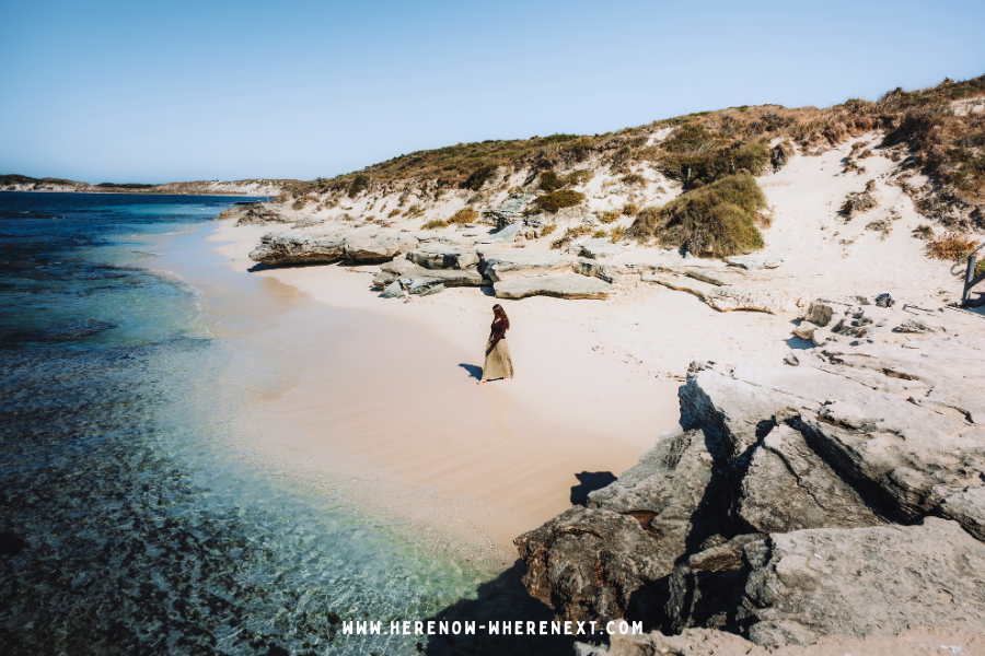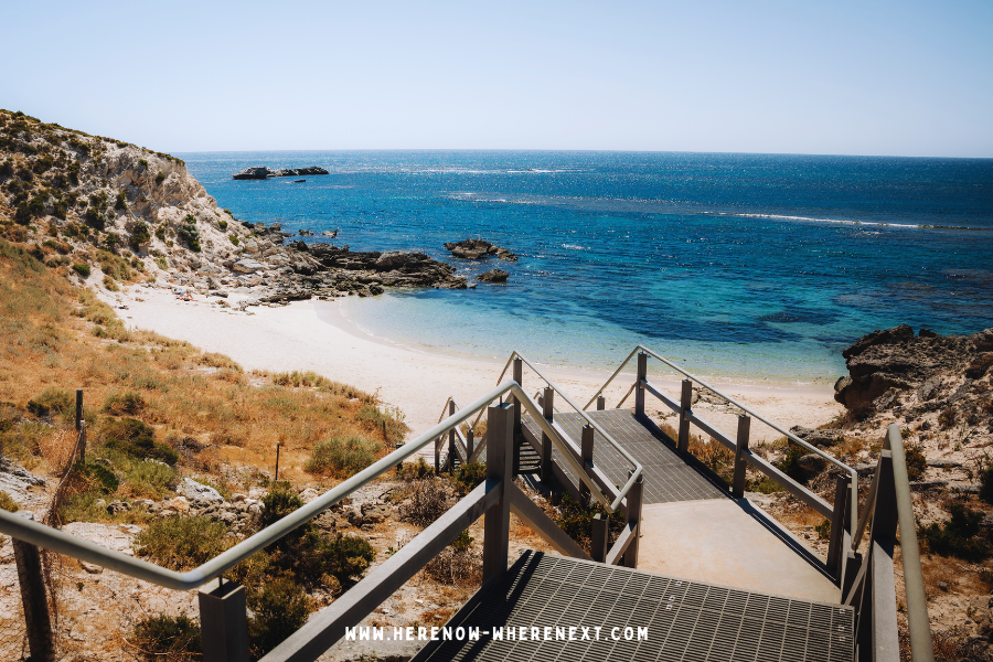 It’s also worth stepping off the boardwalk and following a small path which branches off to the left. It leads to a second, unnamed cove that feels far more secluded. It’s a quiet pocket of white sand and turquoise water that many visitors miss entirely, and feels like a true hidden gem on Rottnest Island.