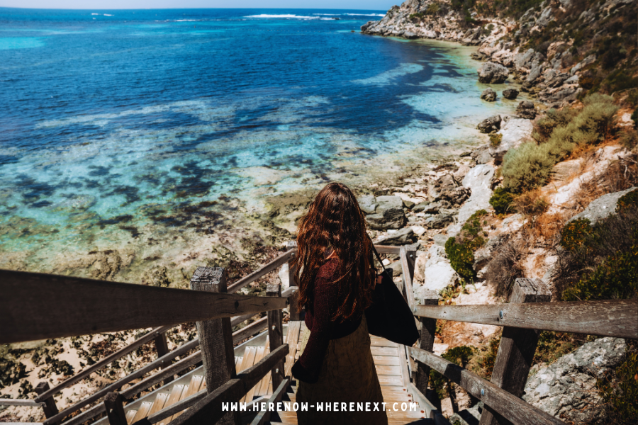 Next is Parker Point, which lies at the southeast tip of Rottnest Island. This one of the island’s highlights thanks to its rugged beauty, fine white sand, and the distinctive Wadjemup daisy that blooms there in the spring. There are steps going down to the ocean, which is protected by a marine sanctuary zone. You may recognise this spot, since the steps are one of Rottnest’s most iconic photo spots!